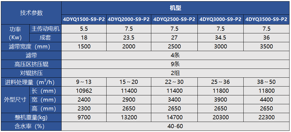 它設(shè)計(jì)創(chuàng)新:采用4條濾帶、高壓區(qū)7-13輥多級(jí)強(qiáng)力對(duì)夾輥擠壓、雙機(jī)雙壓2次脫水方式使?jié)裨愇锪厦撍蟮脑灪实停蟠鬁p輕了后繼烘干或洗滌的能耗,其適用性、經(jīng)濟(jì)性、可靠性均屬國內(nèi)先進(jìn)水平,并先后被國內(nèi)外多家大型企業(yè)選用。